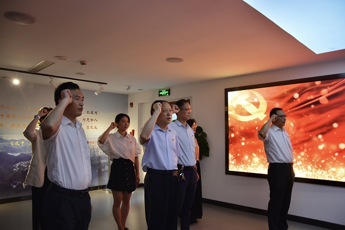 纪念馆从一楼到三楼分为“星火燎原”“党旗飘飘”“热血丰碑”“光辉足迹”四个展区。在讲解员的带领下,大家依次参观四个展区,并认真听取讲解。展厅的每一件革命文物、每一张历史照片、每一个人物雕塑、每一行文字介绍,都生动讲述了一段段坚定信仰、无畏牺牲的故事,令在场的各位党员干部深受震撼。参观结束后,全体党员在鲜艳的党旗前庄严宣誓,重温入党誓词,进一步坚定理想信念并筑牢初心使命。