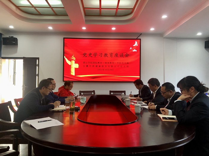 10月29日下午,安徽中铁健康服务有限公司党支部支委成员一行4人在党支部书记方钦安同志的率领下到访公司,并与公司党支部在院会议室举行党史学习教育座谈会。公司党支部支委成员参加了座谈会。