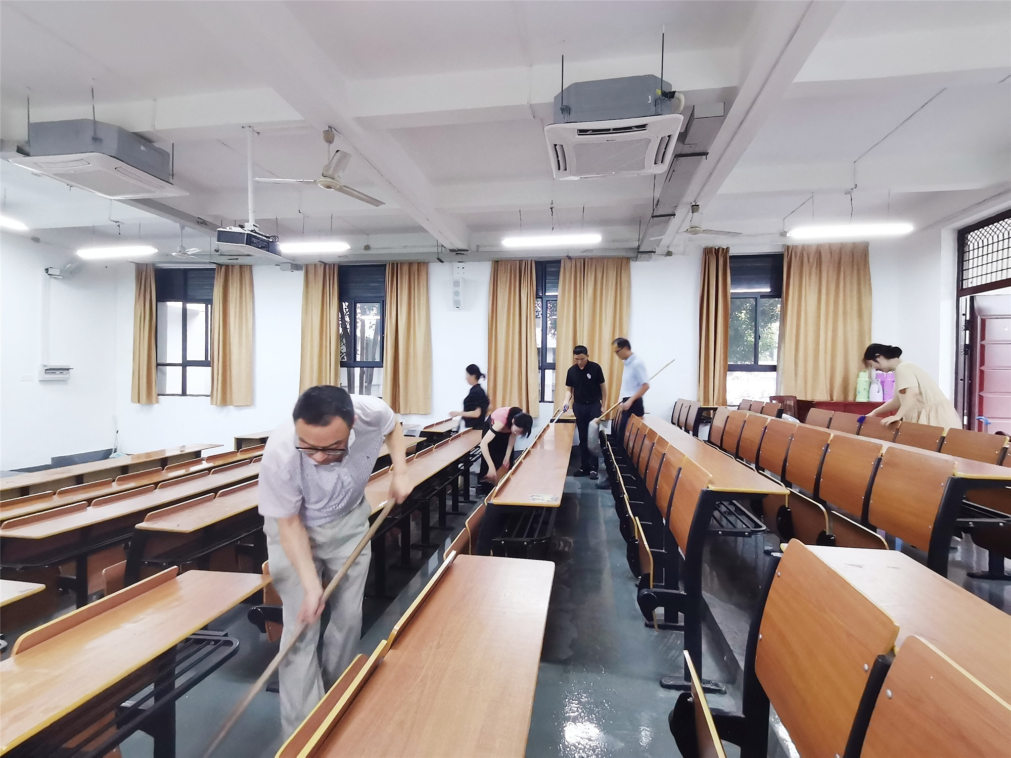 为进一步深化党建工作,发挥党员模范带头作用,营造整洁、舒适的工作环境,2023年7月2日,国际教育公司(太阳成集团122ccvip)党支部在率水校区开展主题党日活动,对部门的培训教室进行了卫生大清理。