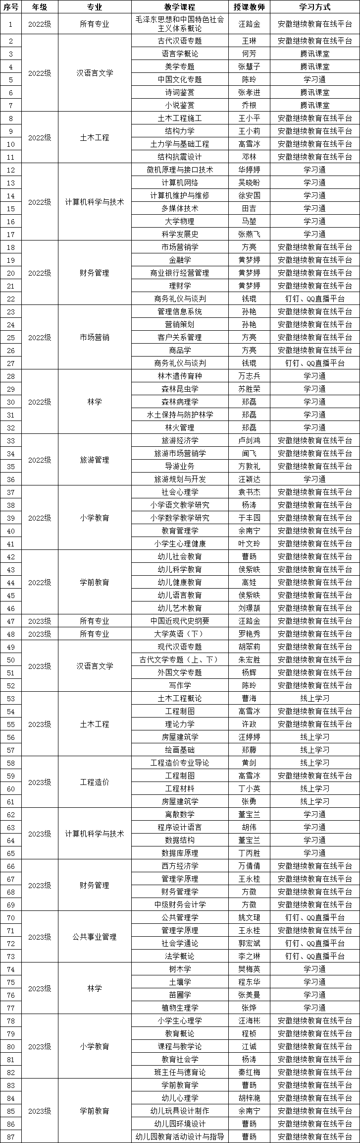 具体事项见各二级公司、函授站点在教学QQ群所发布的教学通知。